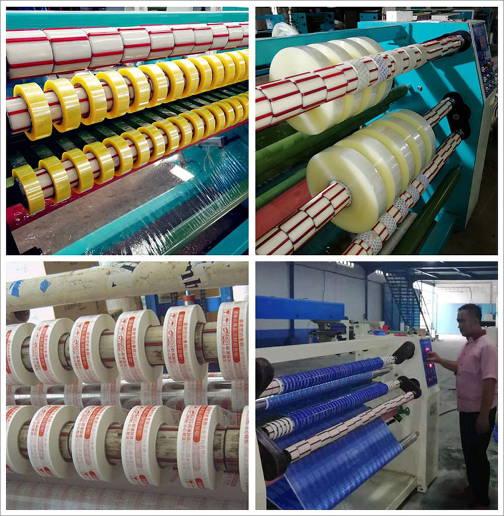 適用范圍:適用于各類(lèi)透明封箱膠帶、印字印刷封箱膠帶半成品母卷的分條加工
